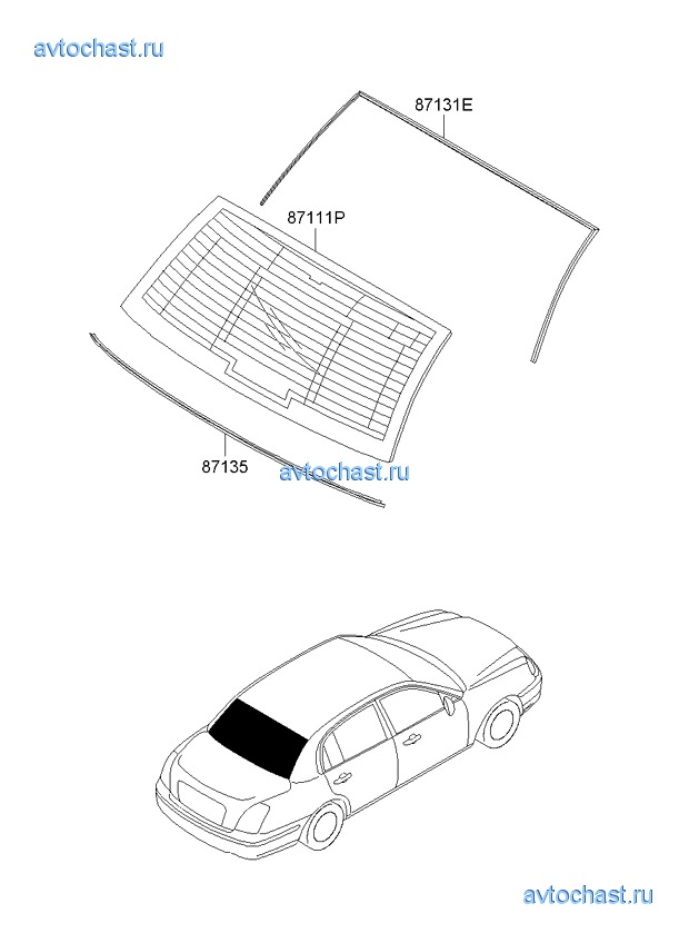 стекло заднее и молдинг